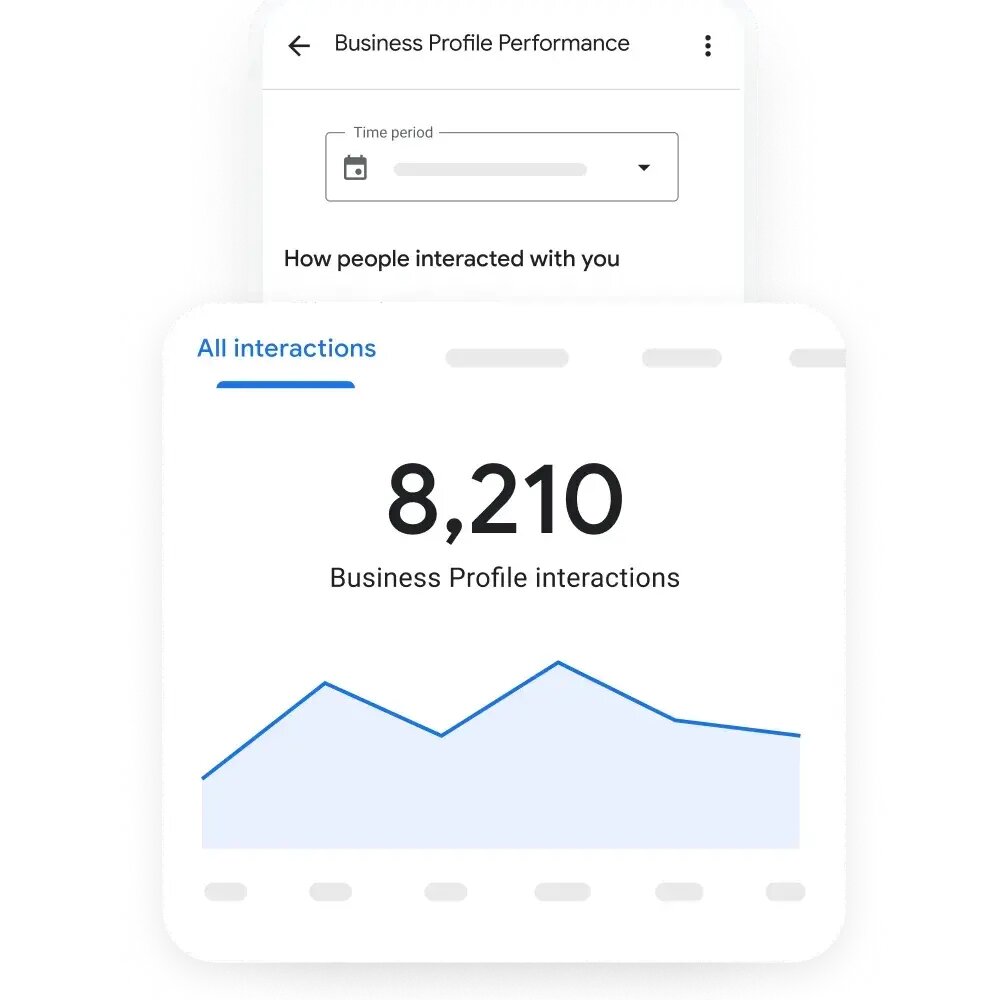 یکی از بهترین ویژگیهای گوگل بیزنس پروفایل، بینشهای ارزشمندی است که دربارۀ رفتار مشتریان به شما میدهد. میتوانید ببینید که چگونه مشتریان لیستینگ شما را پیدا میکنند (عبارات جستوجو، مکان)، چه اقداماتی انجام میدهند (مانند تماس با کسبوکارتان یا بازدید از سایت)، چند نفر کسبوکارتان را از طریق نقشه بررسی میکنند و چند کاربر با شما تعامل دارند.