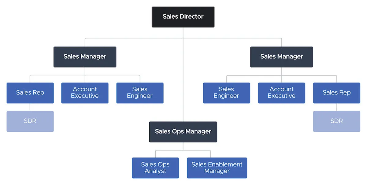 - چارت سازمانی فروش، نموداری است که این ساختار را بهصورت بصری نشان میدهد.