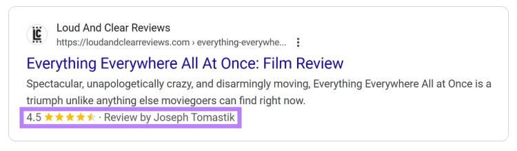 فرض کنید یک سایت بررسی فناوری یک بررسی عمیق منتشر میکند و نشانهگذاری اسکیما اسنیپت محصول را به صفحه اضافه میکند. گوگل میتواند رتبهبندی ستارهای، خلاصۀ نظرات و مزایا و معایب را مستقیماً در نتایج جستوجو نمایش دهد.