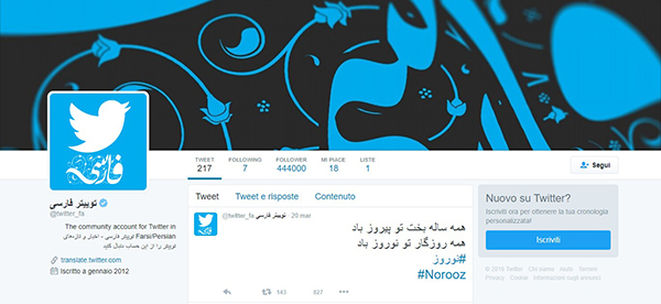 در نتیجۀ پیگیریهای دوستان، اکانت رسمی فارسی توییتر که حالا بنا به دلایلی دیگر در دسترس نیست، در تاریخ 1فروردین1395 به توییتکردن یک بیت شعر به مناسبت عید نوروز اکتفا کرد.