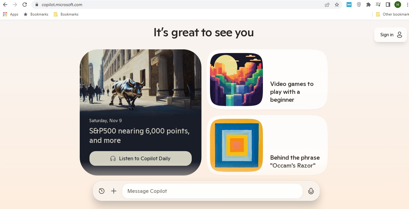 سادهترین روش برای دسترسی به کوپایلت، استفاده از سایت رسمی آن (copilot.microsoft.com) است. در این پلتفرم، شما بهصورت رایگان و بهطور مستقیم با کوپایلت تعامل میکنید و از قابلیتهای متنوع آن بهرهمند میشوید.